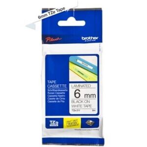 Brother TZe-211 P-touch® Label Tape, 6mm, (1/4″), Black on White